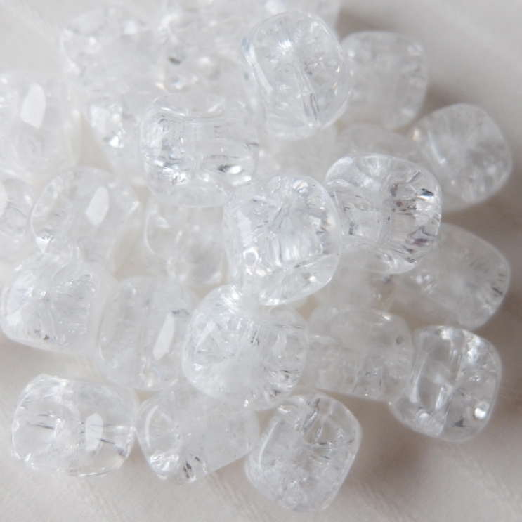 同じくクラック(ヒビ)加工のビーズですがこちらはドイツ製。少しクラックの入り方が違っていて、香港のものは全体的に均一に入っていますが、こちらは中心から広がるように入っています。キューブ状の形がレトロ♪同じデザインの小さなサイズ(S)サイズも一緒に入荷しています(画像はLサイズ)