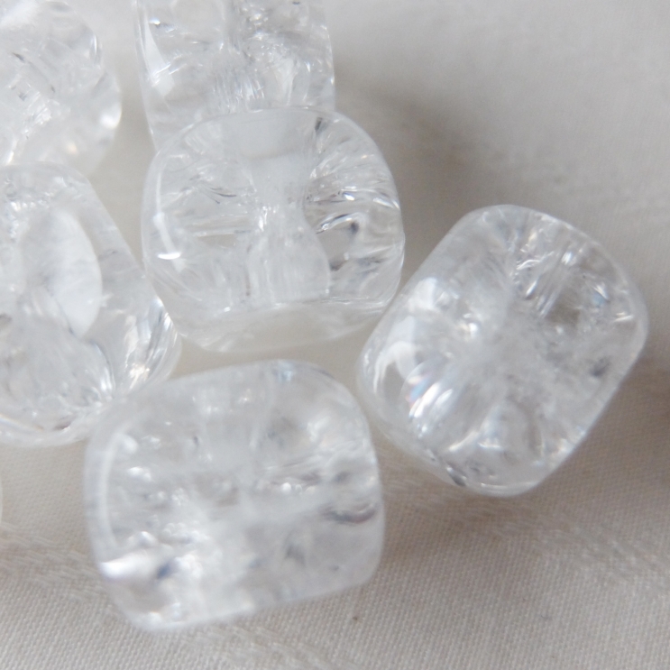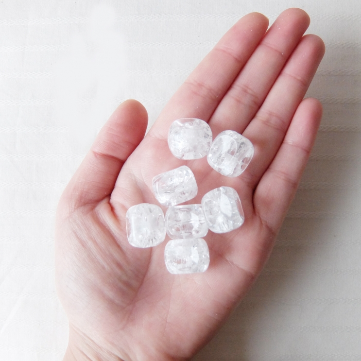 クラック(ひび)加工が氷のようで涼しげなビーズ!店頭には他に丸玉やカット入りなど、同じくクラック入りのビーズを数種類揃えています。夏のアクセサリーにぜひ取り入れてみてください♪