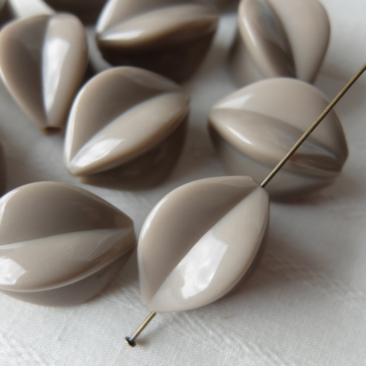 南国のフルーツのような、種のような形がかわいい♪色んな色があったのですが、他の色とあわせやすいグレーベージュをセレクト☆保管状態もよかったようで傷などもなく綺麗なビーズです!ぜひ実物を見てみてください♪