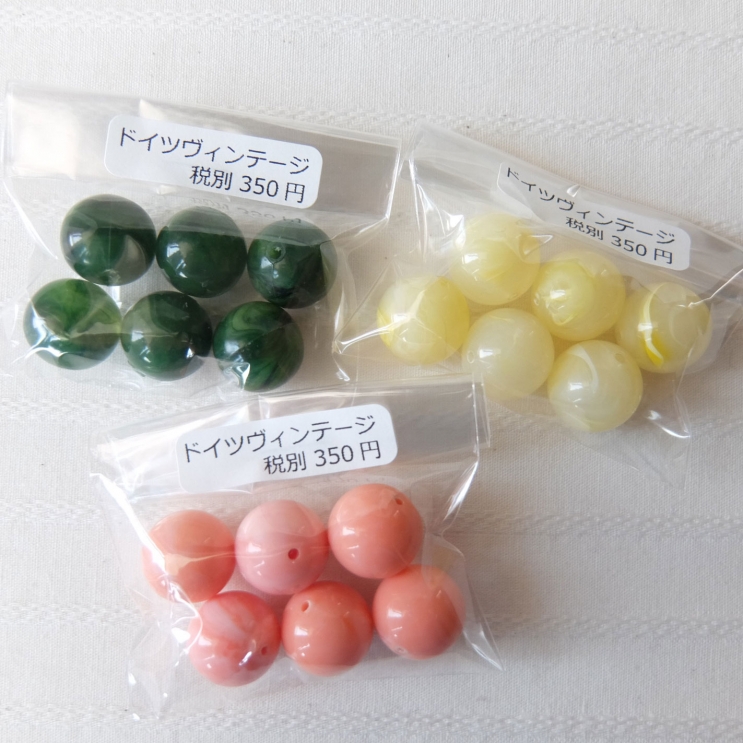 4/30(日)の新入荷は、春夏にぴったりの爽やかな色の小さめカボションや、アメリカ直送の珍しい形のヴィンテージビーズ、人気アイテムの再販も♪