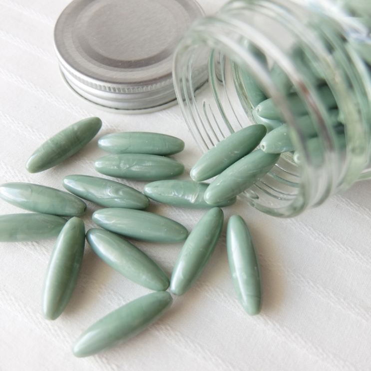 ●細長ライスビーズ 約25×7mm 税別60円/1個 日本製デッドストック アクリル樹脂