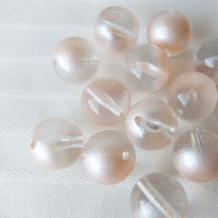 クリアな丸玉ビーズに部分的にかかったパール塗装でかわいらしさと上品さを兼ね備えたビーズ♪先に入荷したお揃いの「白」は店頭で大人気☆こちらのピンクもかわいいお色です^^
